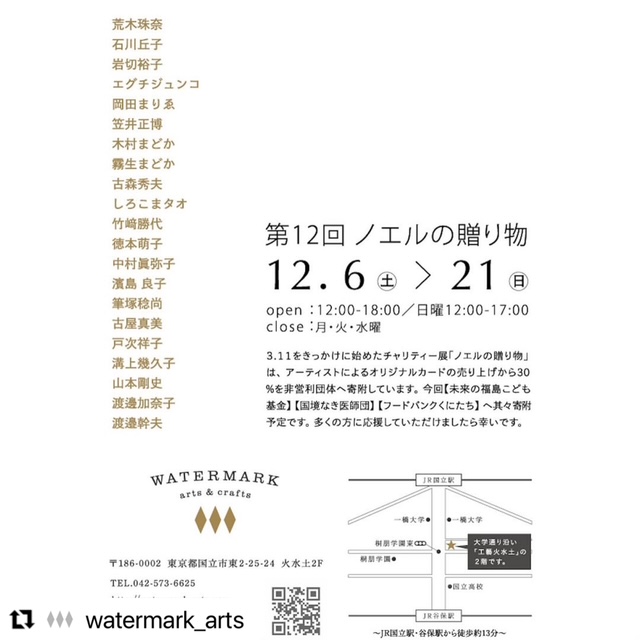 会期:12/6(土)〜21(日) ※ 月・火・水休み時間:12:00〜18:00 /日曜12:00〜17:00