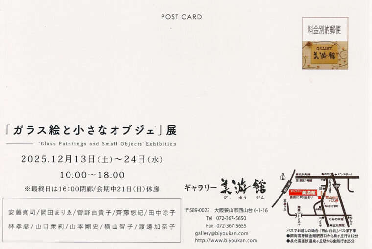 「ガラス絵と小さなオブジェ」展 会期:12/13(土)〜24(水) ※ 21日(日)休み